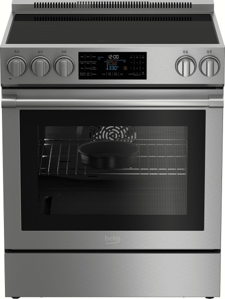 With smart features like easy-read Digital LED Multifunction Display, bright interior halogen lighting, and a residual heat indicator, this 30” Beko range is every home cook’s dream. Its roomy 5.7 cu. ft. oven is equipped with 3 heavy-duty oven racks, including a telescopic lower rack, for safe and easy handling of your heaviest dishes and cookware. Plus, a low-maintenance enamel lining and self-clean program make care and cleanup a breeze.