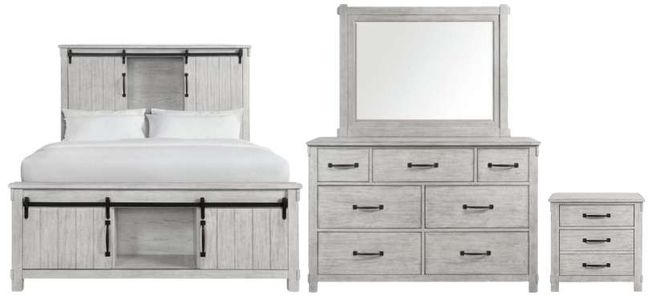 Easily slide the cabinet doors on select pieces in the collection to access your belongings. The nightstand features two USB ports, that will keep your devices fully charged while you sleep. Inside the nightstand, you can also find a hidden drawer that allows you to store away your more valuable items. Dark, metal hardware pairs beautifully with the white washed finish making this a transitional farmhouse a staple in your home year after year!