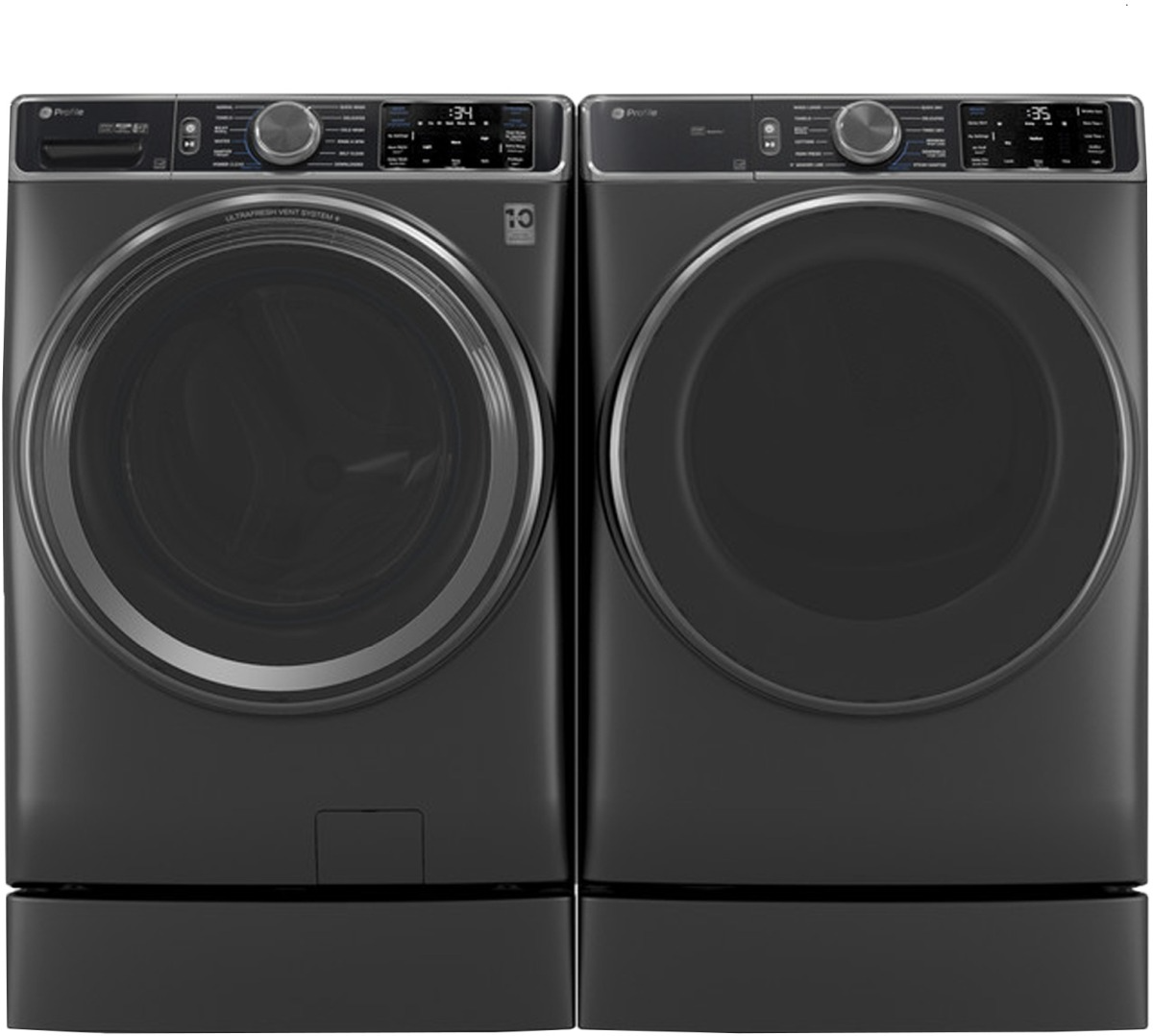 GE Profile™ Carbon Graphite Front Load Washer and Electric Dryer Laundry Pair with 5.5 Cu Ft. Front Load Washer and 7.8 Cu Ft. Front Load Electric Dryer.Read More