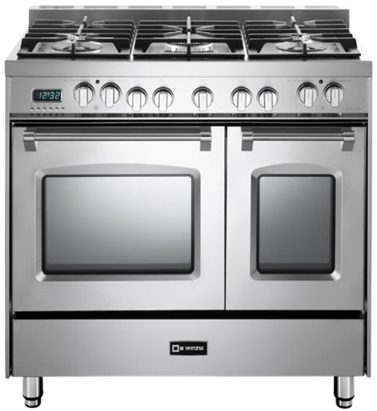 Verona Prestige series 36 inch dual fuel range with 5 sealed burners that goes up to 17000 BTU. The range delivers dual ovens of total capacity of 3.9 cu. ft. space to cook and bake. The ranges comes with a storage compartment where you can store low flat pans or plates to save space in the kitchen.Read More
